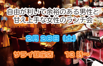 募集中 銀座 2026.02.28 / 13:00 〜 amici 【銀座】《土曜開催/人気》自由が利いて余裕のある男性と甘え上手な女性のランチ会 初めての方でも参加しやすい、銀座でランチ会開催します!!優雅な空間でのお食事をお楽しみください! 会場 サライ…
